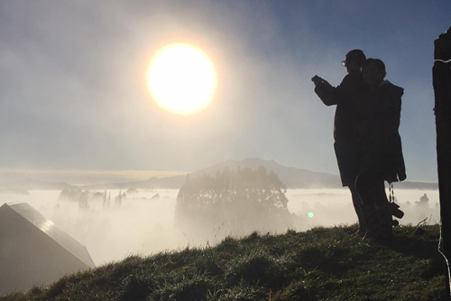 the horizon and the tip of Mount Ngauruhoe (Mount